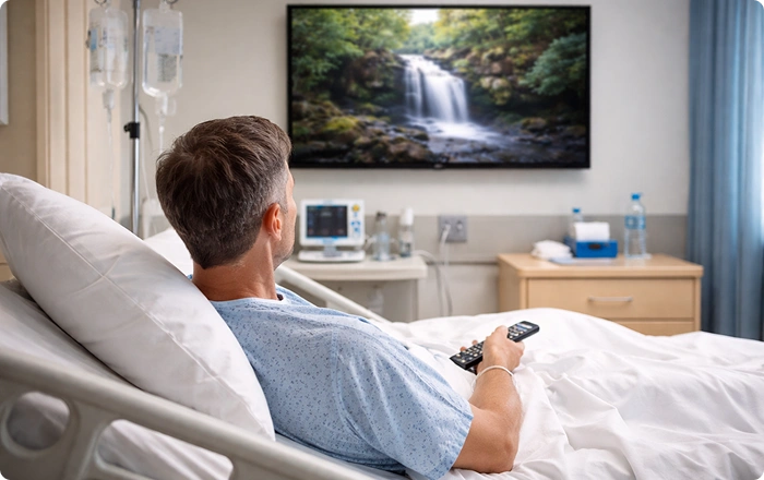 All single and double sharing rooms are equipped with TV for patients' relaxation and entertainment. Patients are requested to maintain minimal volume for viewing and ensure that other occupants are not disturbed.